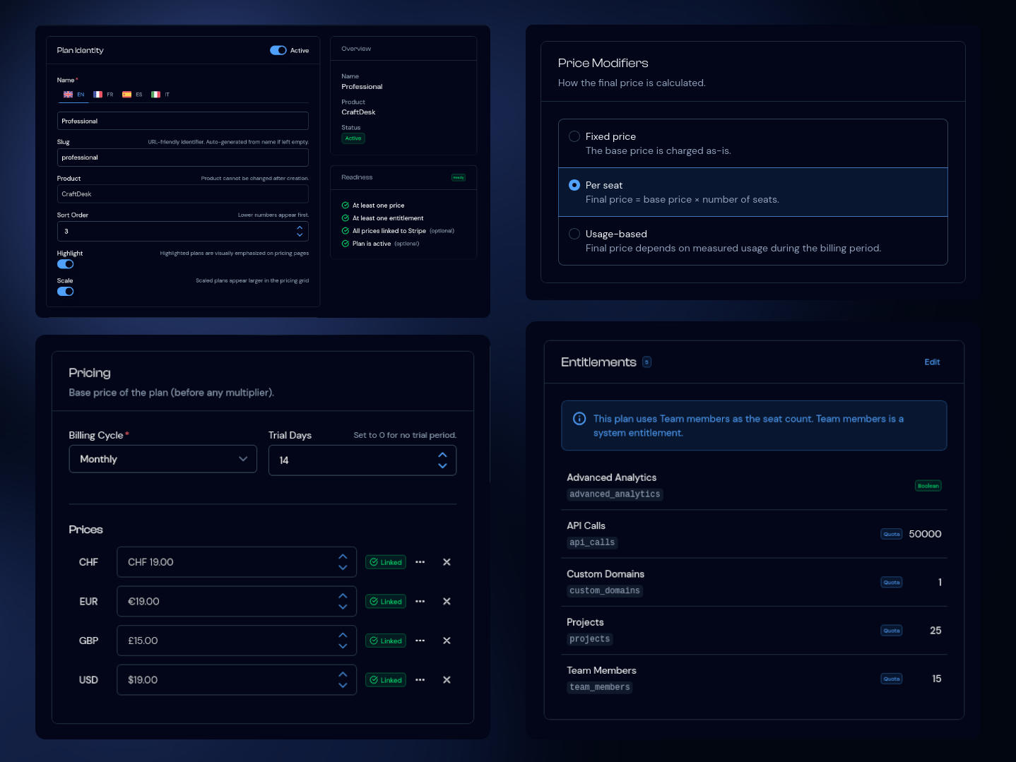 A complete billing architecture built for correctness, not convenience. Shadow validation, strict currency invariants, tax-aware flows, and a clear evolution path beyond Stripe-managed billing.
